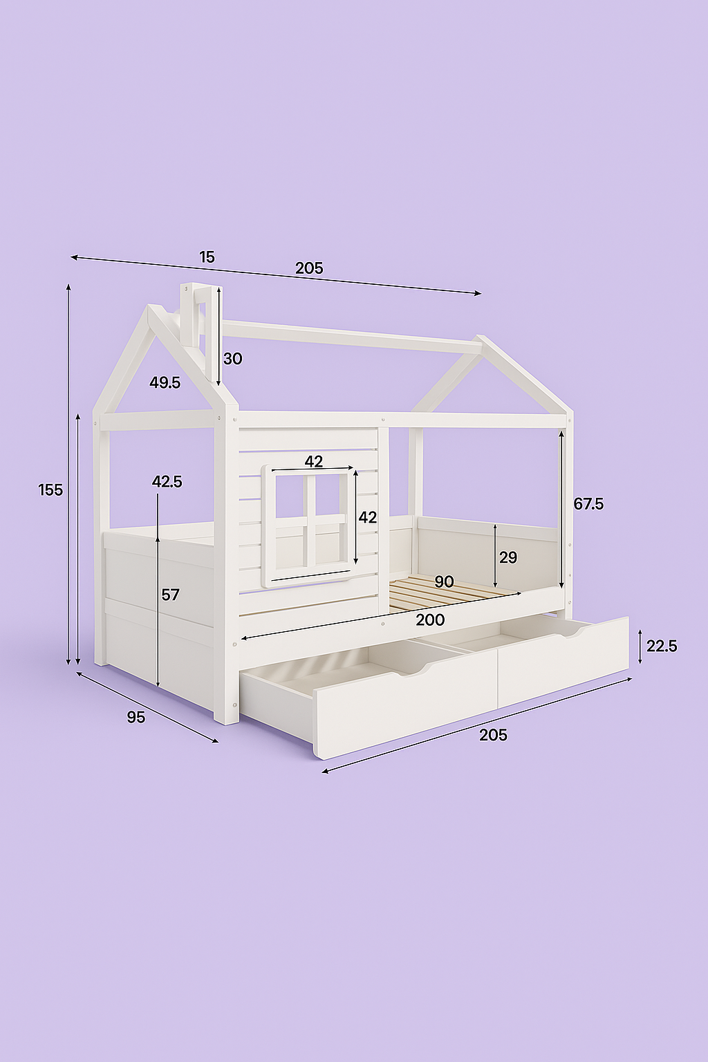 La structure en bois robuste assure une excellente stabilité et une grande durabilité. Avec ses tiroirs de rangement spacieux intégrés sous le couchage, ce lit permet d’optimiser l’espace de la chambre en gardant jouets, linge de lit ou vêtements toujours bien organisés.