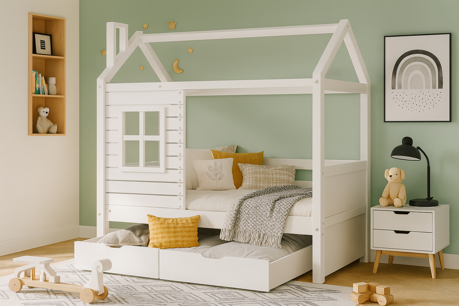 Lit cabane enfant avec tiroirs de rangement – Design maison ludique