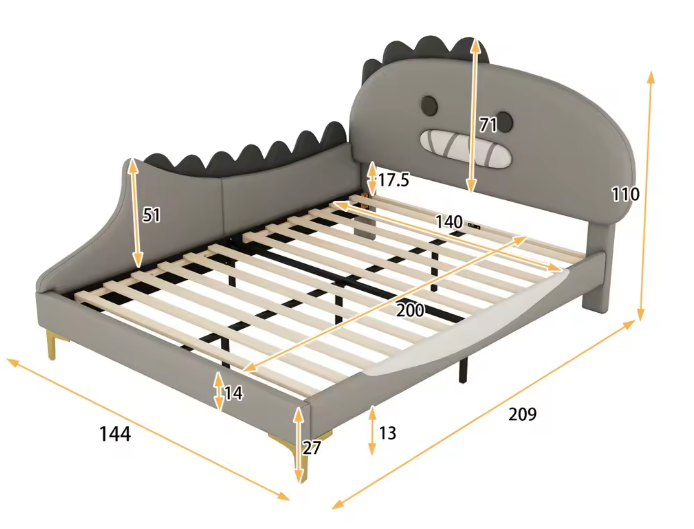 Avec son allure sympathique et rassurante, ce lit dinosaure est le compagnon idéal pour offrir à votre enfant un espace de repos confortable, amusant et plein de charme.