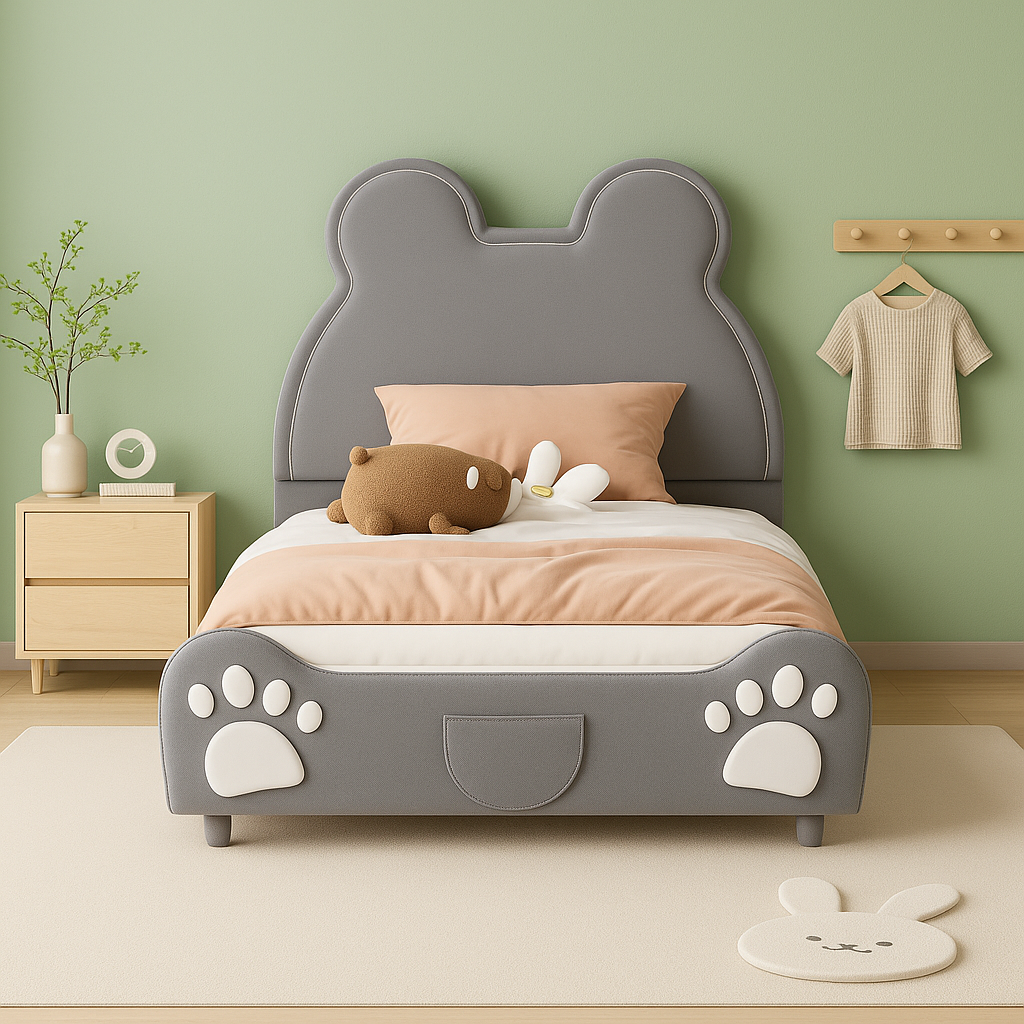 Lit enfant ourson gris 90x210 cm – Design ludique et sécurisé